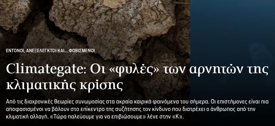 Γιατί όμως ποτέ τα μέσα ενημέρωσης δεν αναρωτιούνται γιατί κάποιος μπορεί να συμφωνεί με το κυρίαρχο αφήγημα; Δεν μπορεί αυτός να πληρώνεται από λόμπι; Δεν μπορεί να κάνει λάθος; Δεν μπορεί να παίζουν ρόλο τα «υπερκέρδη» των εταιρειών ενέργειας που έγιναν πρόσφατα είδηση; Δεν είναι παράδοξο η Καθημερινή, που ανήκει σε γνωστό έμπορο πετρελαίου, να δημοσιεύει συνεχώς άρθρα υπέρ του κυρίαρχου αφηγήματος, και ενίοτε να κατηγορεί το λόμπι των ορυκτών καυσίμων για προπαγάνδα;
